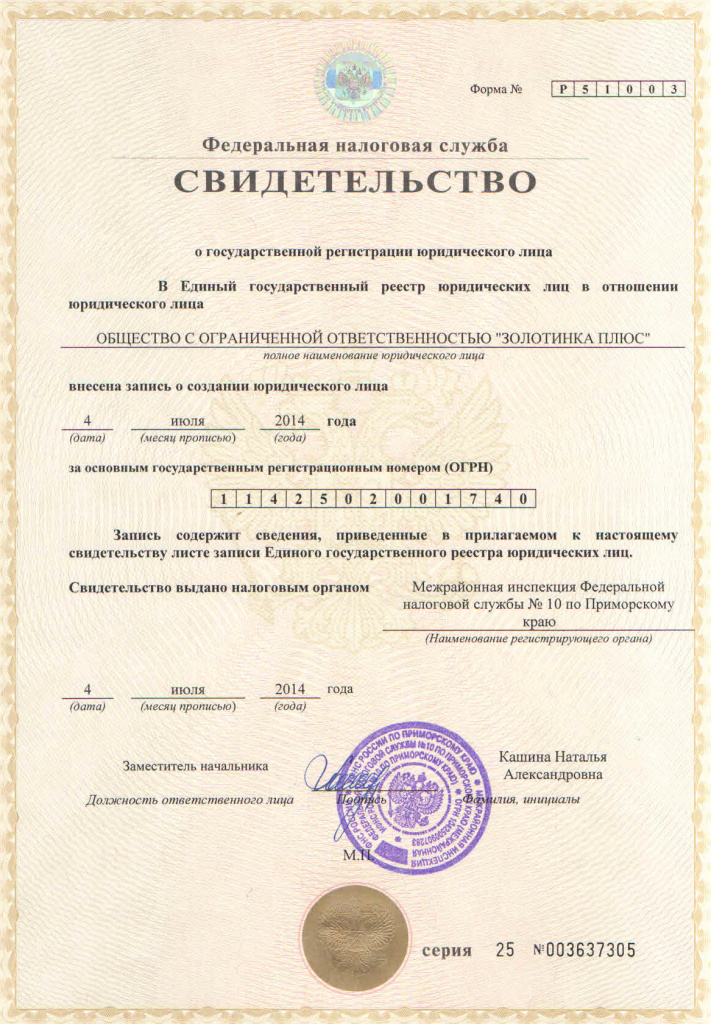 Юридический адрес: 692760, Приморский край, г.Артем, ул.Фрунзе, д.53, офис 302